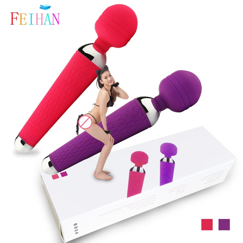 On sale Chance for FEIHAN USB Rechargeable 15 Speed AV Magic Wand Vibrator Massager G Spot Oral Clit Vibrators for Wom